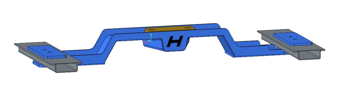 Attention was then turned to the transmission crossmember. The transmission tunnel is tight tight on the S30, especially after fitting the larger T56 6speed in place. Using a similar construction technique as the engine mounts the crossmember was designed using laser cut steel which provides a strong and intricate shape that can be easily fabricated. The mount was designed to provide maximum ground clearance with a dual exhaust setup. pipes were mocked up in CAD to test the design (Check out the project vehicle pages to see our actual exhaust installation!)