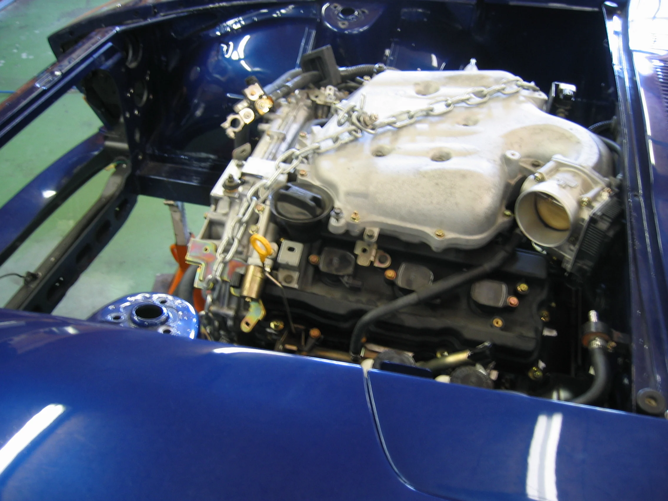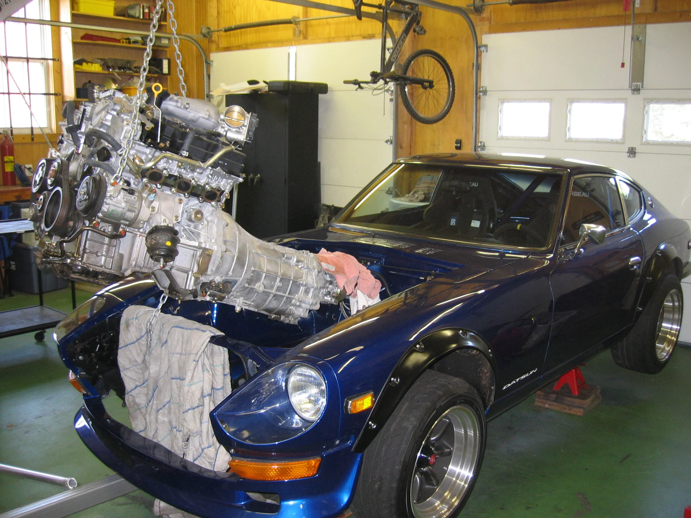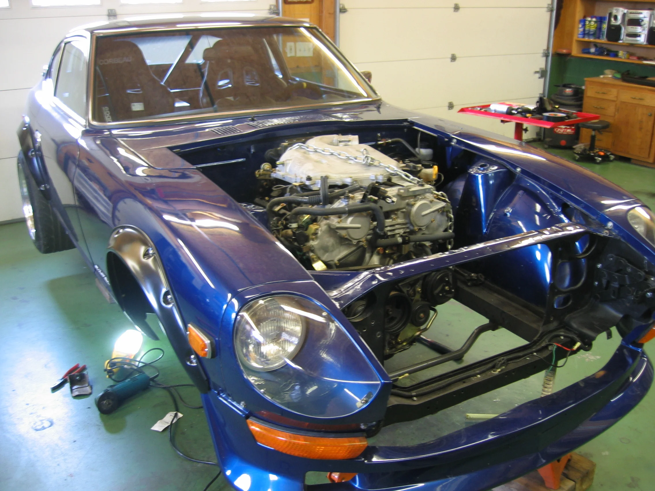 I started by cleaning up the engine bay and taking any miscellaneous things off the engine. Once I got the engine in place it was amazing how small it looked in the 240z... its a tight squeeze width wise but it really looked at home.